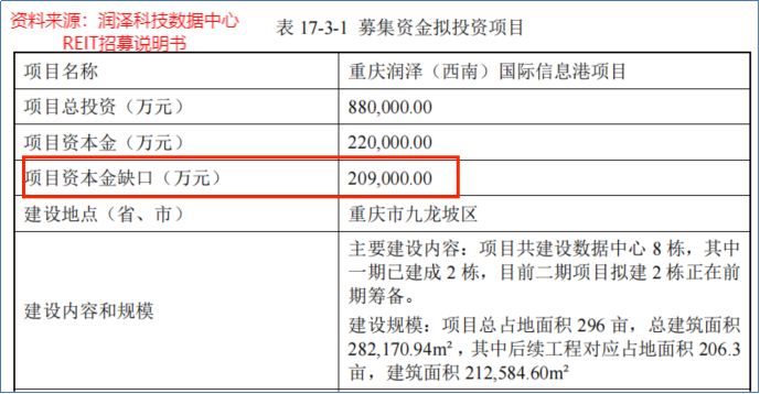 目前,润泽科技还在海南、重庆、廊坊等地区有四个主要的数据中心在建项目,其中重庆润泽(西南)国际信息港项目的资金缺口接近21亿元。