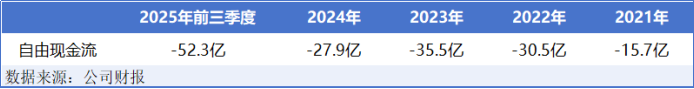 在这种重资产模式下,公司的自由现金流常年为流出状态。