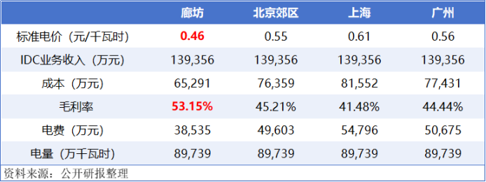 这一选址策略,让润泽科技获得了可观的成本优势。